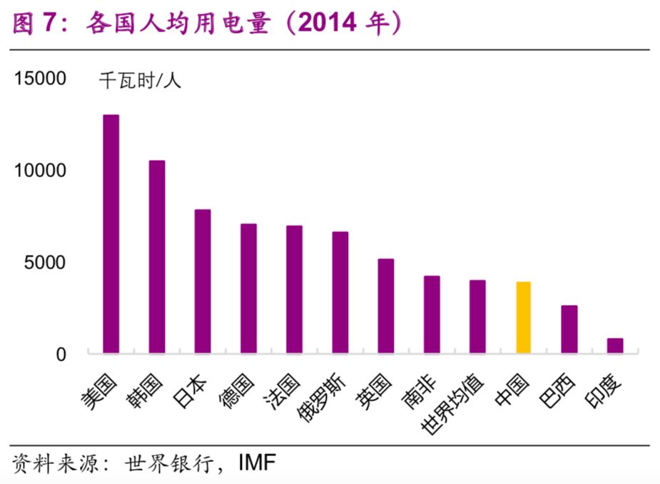 人均用電量則有所差異,部分西部資源輸出省份較高。排名前三的是寧夏(1.3萬千瓦時/人)、青海(1.1萬千瓦時/人)、內蒙古(1.0萬千瓦時/人)(圖37),而世界均值為0.4萬千瓦時/人。