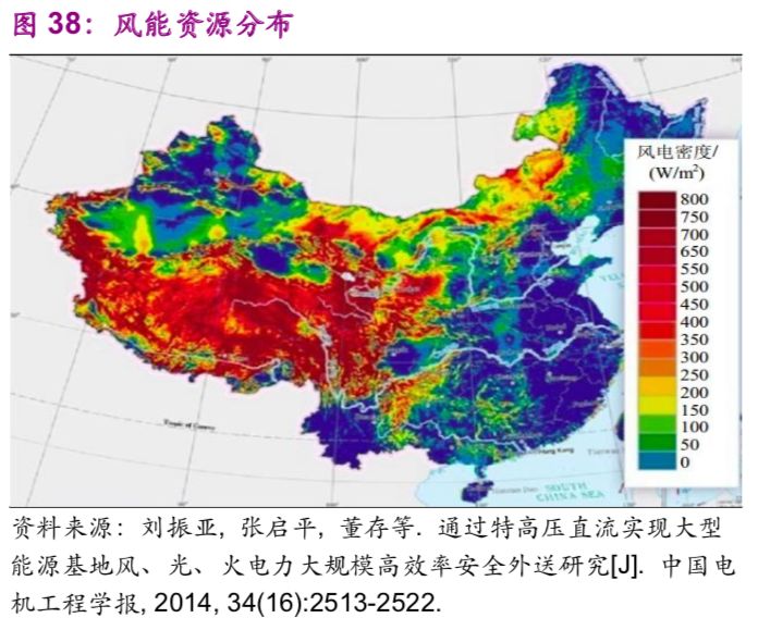 中國能源資源在地區(qū)之間的不平衡分布帶來了跨地區(qū)之間的能源輸送需求,例如“西電東送”“西氣東輸”。以水力資源為例,中國西部12個省的水力資源約占全國總量的81.46%,特別是西南地區(qū)的云、貴、川、渝、藏5個省占全國總量的66.70%。風能、太陽能同樣呈現西部多于東部的現象(圖38、39)。